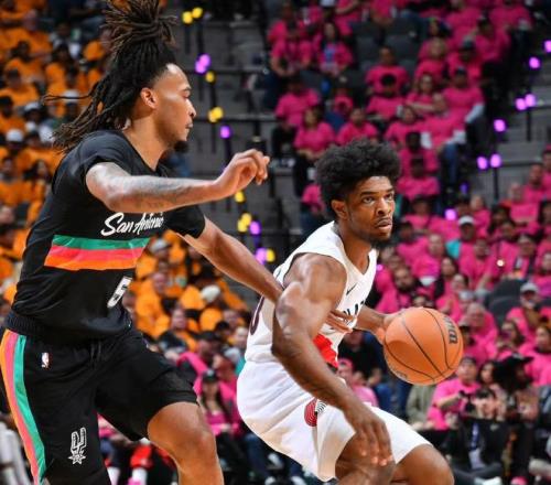 而马刺不仅有文班,外线核心福克斯也是全明星水平的球员,在国王队当过这么多年老大,带队经验丰富。并且,福克斯一直以来还具备大心脏属性,擅长打关键球,季后赛这种强硬对局也能有所发挥,这么来看今年马刺争冠真的很有戏。另一边的开拓者,可能是今年季后赛球队当中,最冷门的一支,他们没几个明星球员,账面实力看起来差了许多,却硬生生打进季后赛,主要原因在于阿夫迪亚进步太快了,这名锋线冲击力十足,不惧对抗,此前的附加赛中,阿夫迪亚就轰出了41分12助攻的大号两双数据。